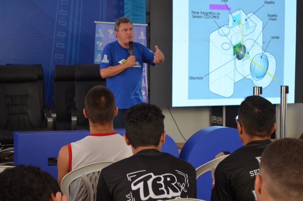 Alunos conheceram os enquadramentos e planos que podem ser adotados em fotografias (Foto: Alexandre Almeida I Secom ALE/RO)A palestra contou com a participação de alunos do Colégio Tiradentes da Polícia Militar III, de Ariquemes, e teve o objetivo de promover uma preparação básica para a aplicação do trabalho de fotografia além de assegurar a capacitação a estudantes para que possam ser adaptadas com flexibilidade as condições de ocupação ou aperfeiçoamento.