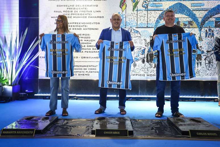 Na noite desta segunda-feira (15), os ex-atletas Marianita Nascimento, Arce e Carlos Miguel foram eternizados na Calçada da Fama do Grêmio Foot-Ball Porto Alegrense, em solenidade realizada no Saguão do Portão A da Arena, como parte da Programação Oficial dos 122 anos do Tricolor.
