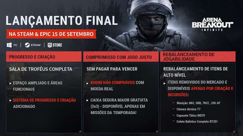 A MoreFun Studios anunciou hoje que seu jogo tático de tiro e extração grátis, Arena Breakout: Infinite, será lançado oficialmente no Steam em 15 de setembro. O jogo também chegará na Epic Games Store posteriormente.
