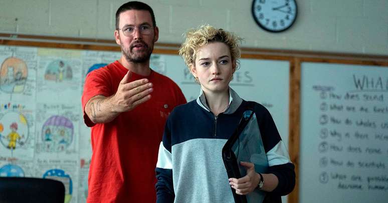Diretor Zach Cregger ao lado de Julia Garner durante as filmagens do longa Divulgação/Waner Bros. Pictures)