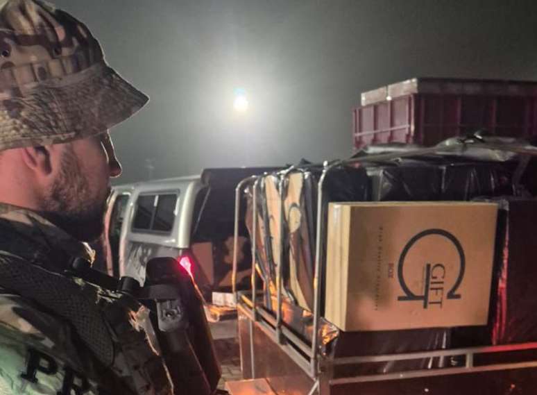 Foto: PRF/Divulgação / Porto Alegre 24 horasO material estava em uma Frontier com placas de Sapucaia do Sul, que tracionava um semirreboque. Ao receber ordem de parada, o motorista foi abordado e os agentes constataram que o veículo estava completamente carregado com caixas do produto contrabandeado.