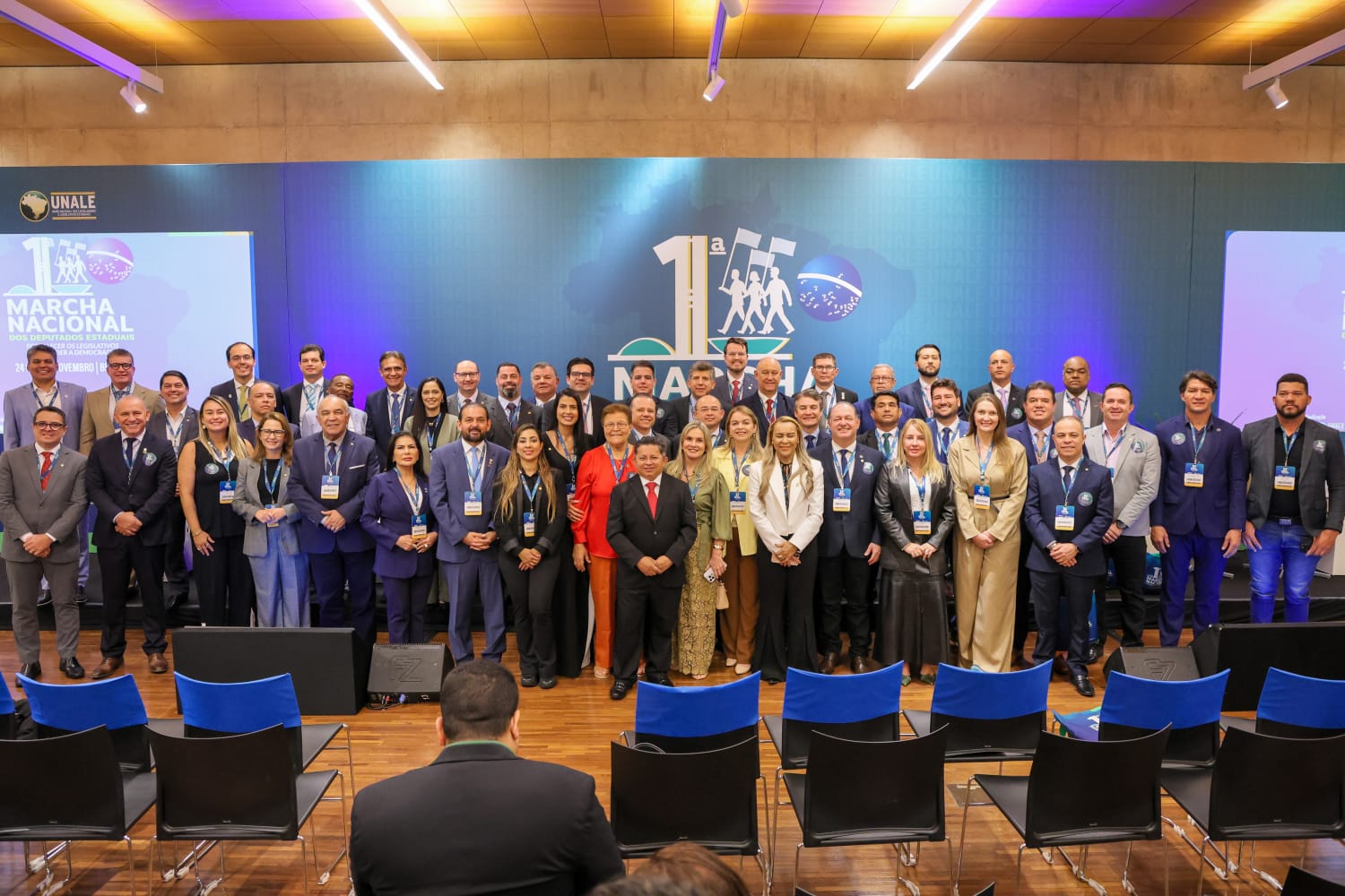 A marcha, considerada a maior mobilização institucional já realizada pelos legislativos estaduais, reuniu deputados, dirigentes da Unale, prefeitos e lideranças de todo o Brasil, com o objetivo de fortalecer o pacto federativo e defender as prerrogativas dos parlamentos estaduais diante das mudanças propostas na Reforma Administrativa (PEC 38/2025), atualmente em tramitação no Congresso Nacional.